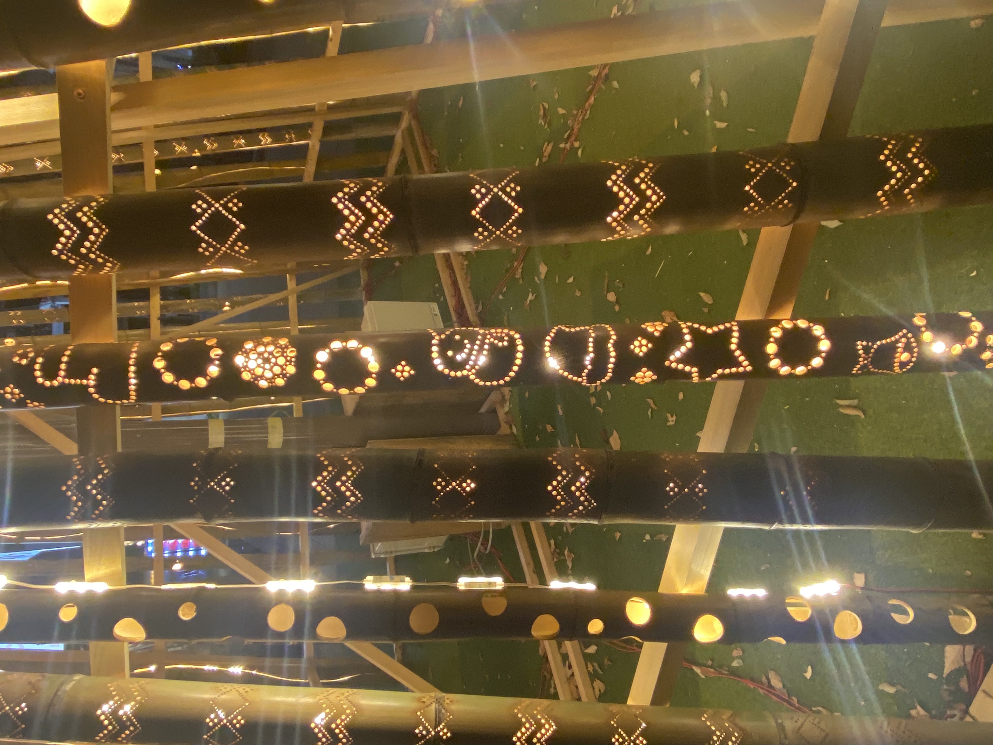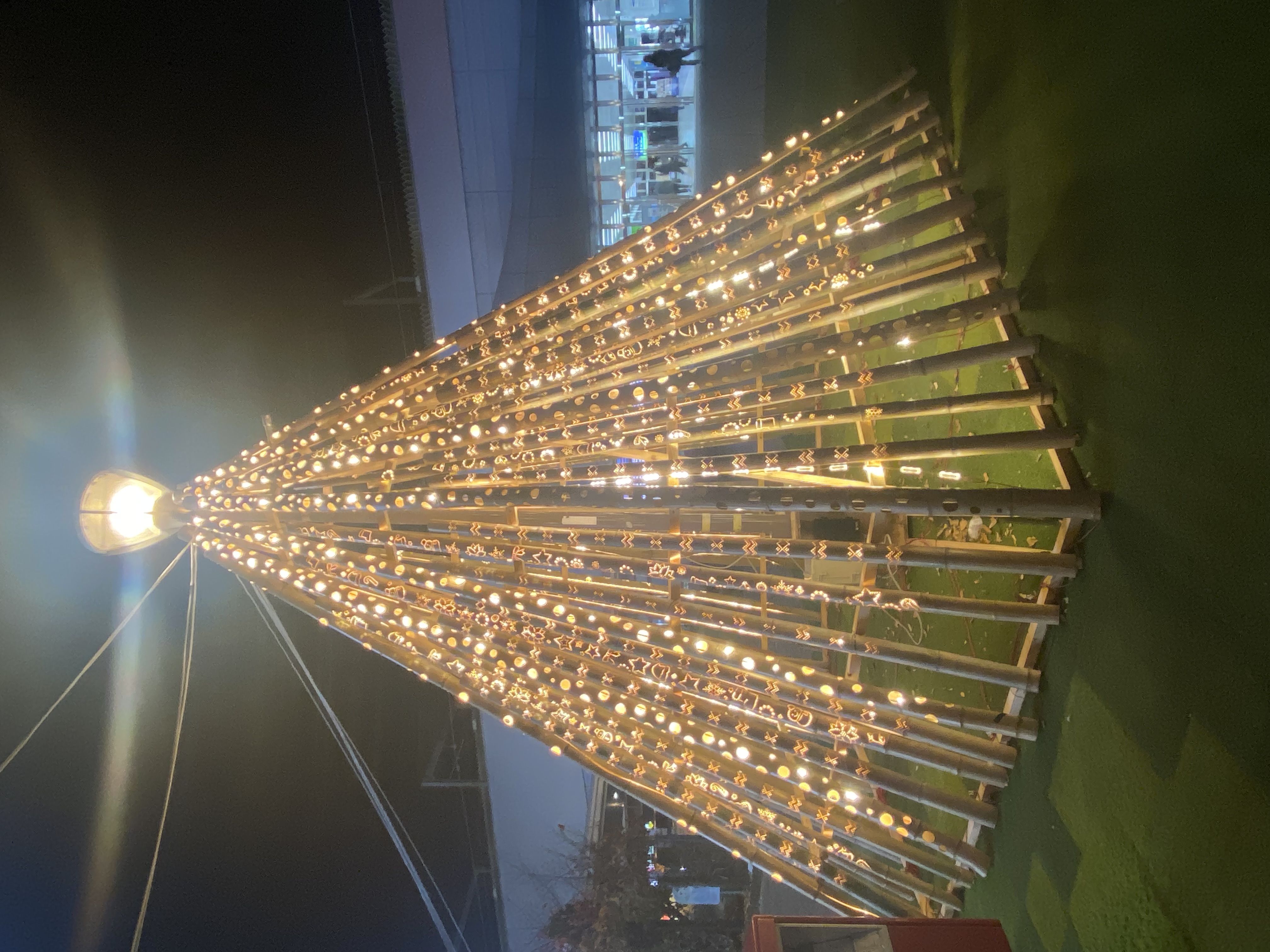 かわのまちイルミは約200~300本の"⽵ランタン"で